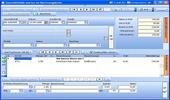 Geschäftfälle warten: Hier werden alle Belegarten wie Angebot/Auftrag/Lieferschein/Rechnung erfasst |